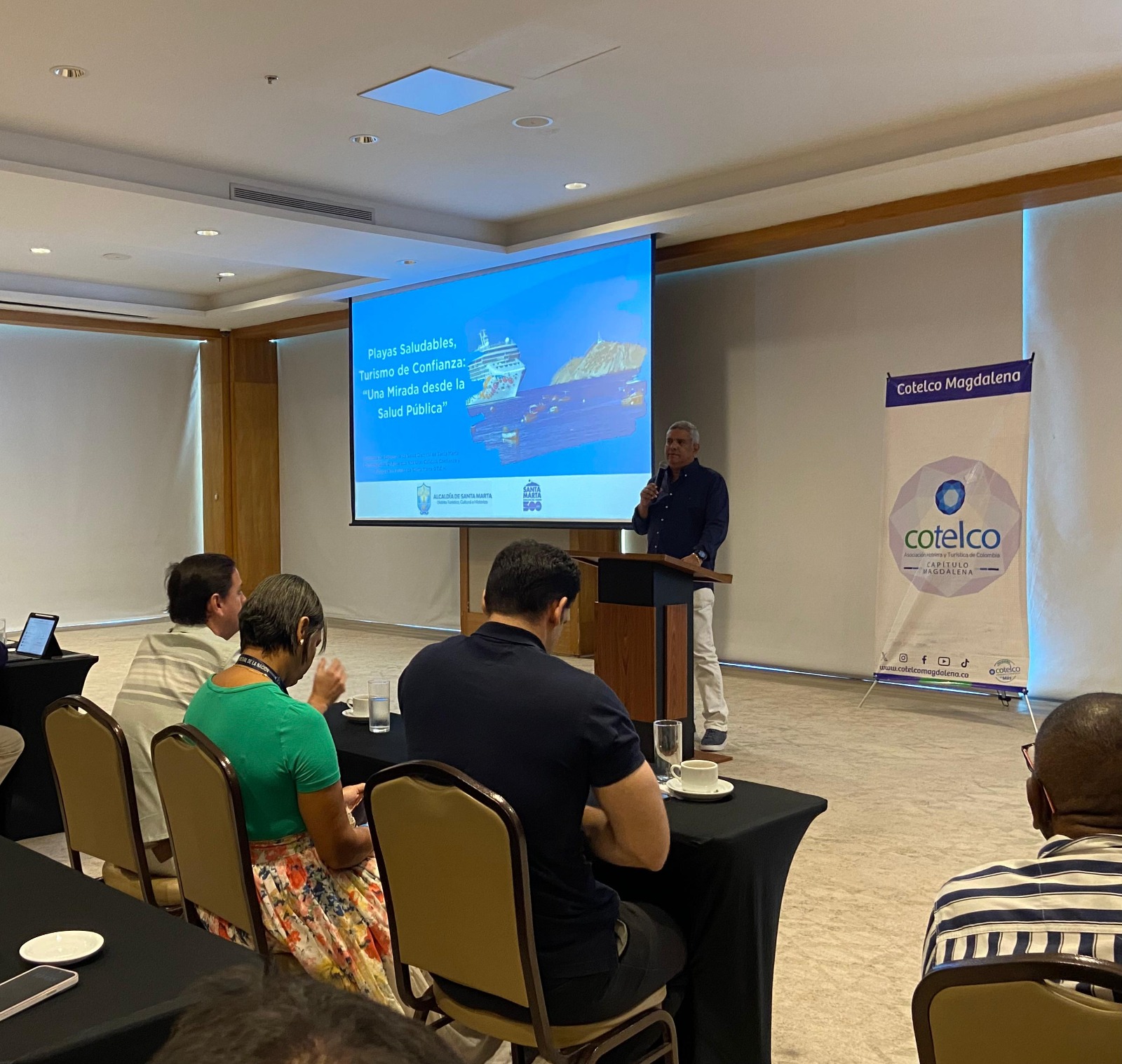 Durante el evento “El agua que nos une: Calidad, confianza y futuro en las playas de Santa Marta D.T.C.H.”, organizado por la Asociación Hotelera y Turística de Colombia, Cotelco Magdalena; Jorge Paulo Lastra, alcalde encargado, reiteró que las playas samarias son motor de desarrollo económico, cultural y social, además de un patrimonio natural invaluable que atrae a miles de visitantes cada año.