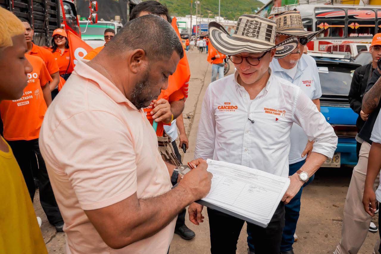 Caicedo en su Caicedoneta, hizo un recorrido desde Sampués, en el monumento del Sombrero Vueltiao, hasta el Parque Santander, donde conversó con comerciantes y ciudadanos; y donde continuó el proceso de recolección de firmas. Líderes de sectores populares manifestaron su apoyo al precandidato.