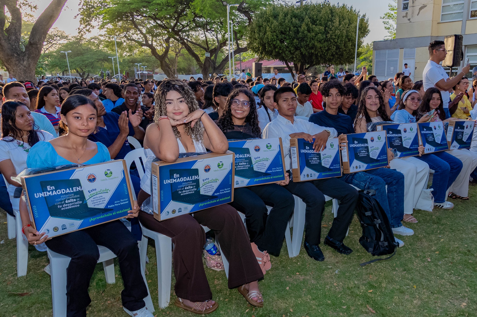 Felicidad y profundo agradecimiento es lo que reflejan los estudiantes de la Universidad del Magdalena, beneficiarios de los programas Talento Magdalena y Talento Santa Marta, luego de la entrega de 378 computadores portátiles destinados a fortalecer su proceso formativo.