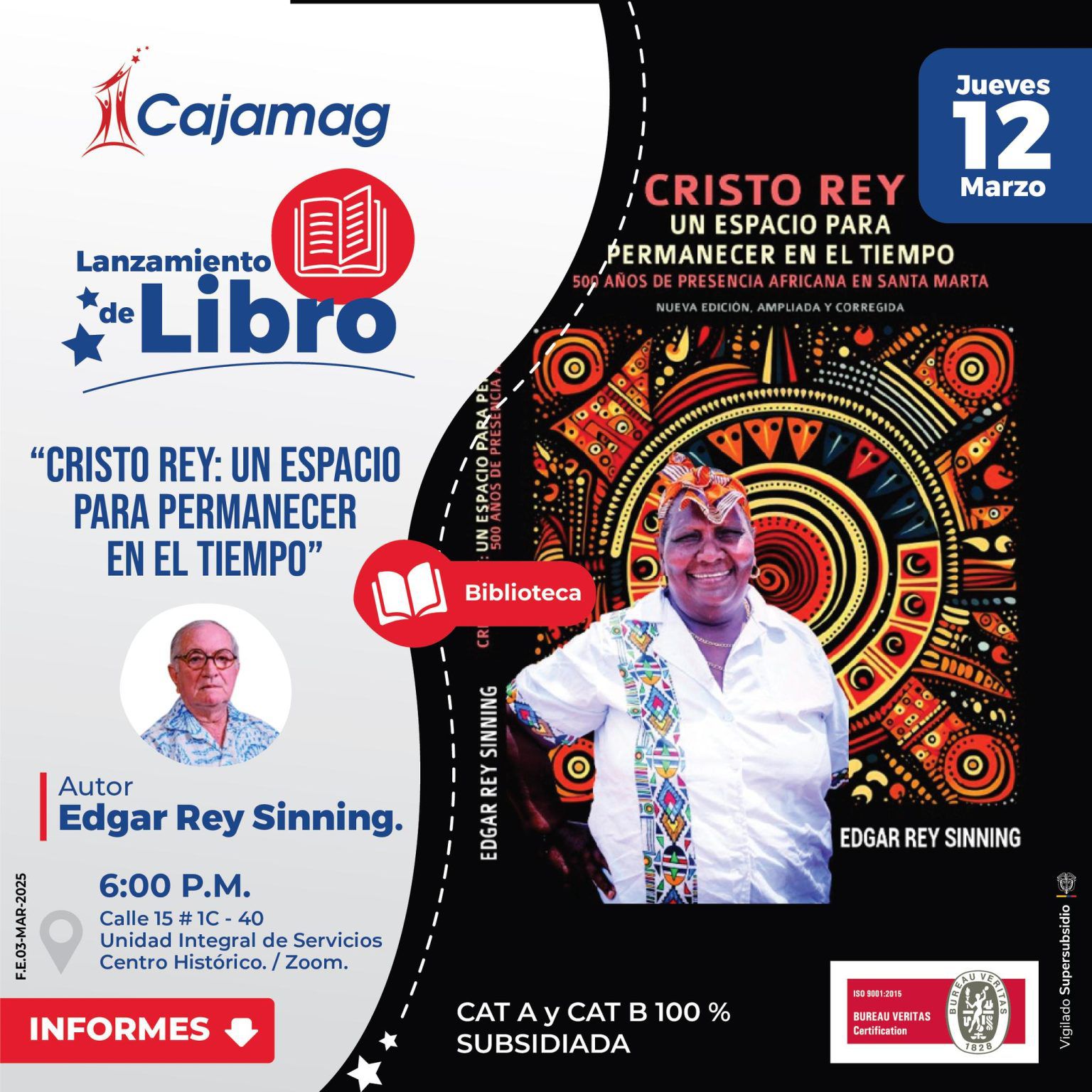 El lanzamiento se realizará el jueves 12 de marzo de 2026 a las 6:00 de la tarde en el Salón Magdalena de la Unidad Integral de Servicios Centro Histórico de Cajamag, ubicada en la calle 15 #1C – 40, y también contará con transmisión virtual a través de la plataforma Zoom, permitiendo que personas desde diferentes lugares puedan conectarse con esta experiencia cultural.