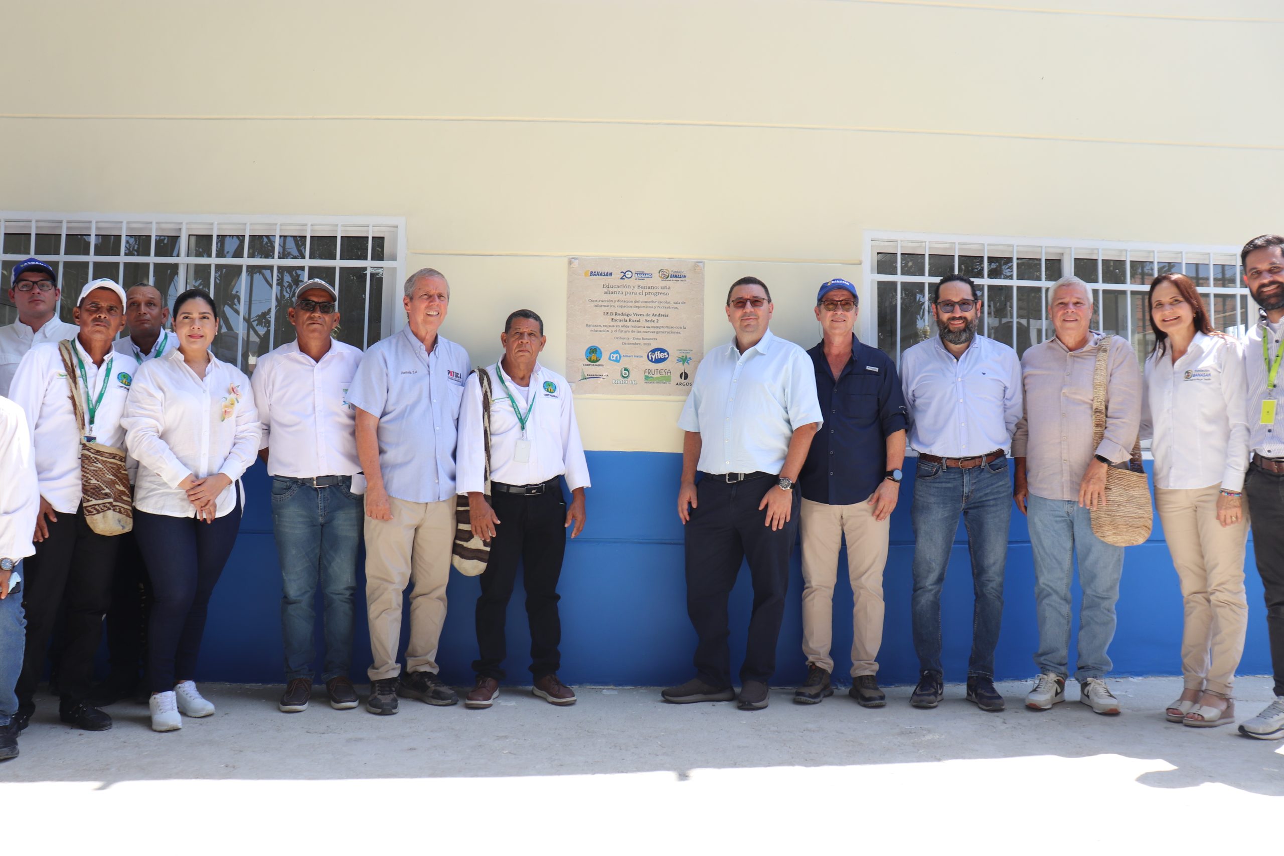 Este martes fueron presentadas las obras realizadas en la Institución Educativa Departamental Rodrigo Vives de Andreis, sede II, ubicada en el corregimiento de Orihueca, Zona Bananera. Estas labores de mejoramiento estructural que beneficiarán a más de 700 estudiantes de la región fueron lideradas por Banasan en la conmemoración de sus 20 años y la Fundación Banasan, en alianza con, Corporagros, Corporación Vitalban, Banapalma S.A., Banex S.A., Frutesa, Albert Heijn, Fyffes y Argos.