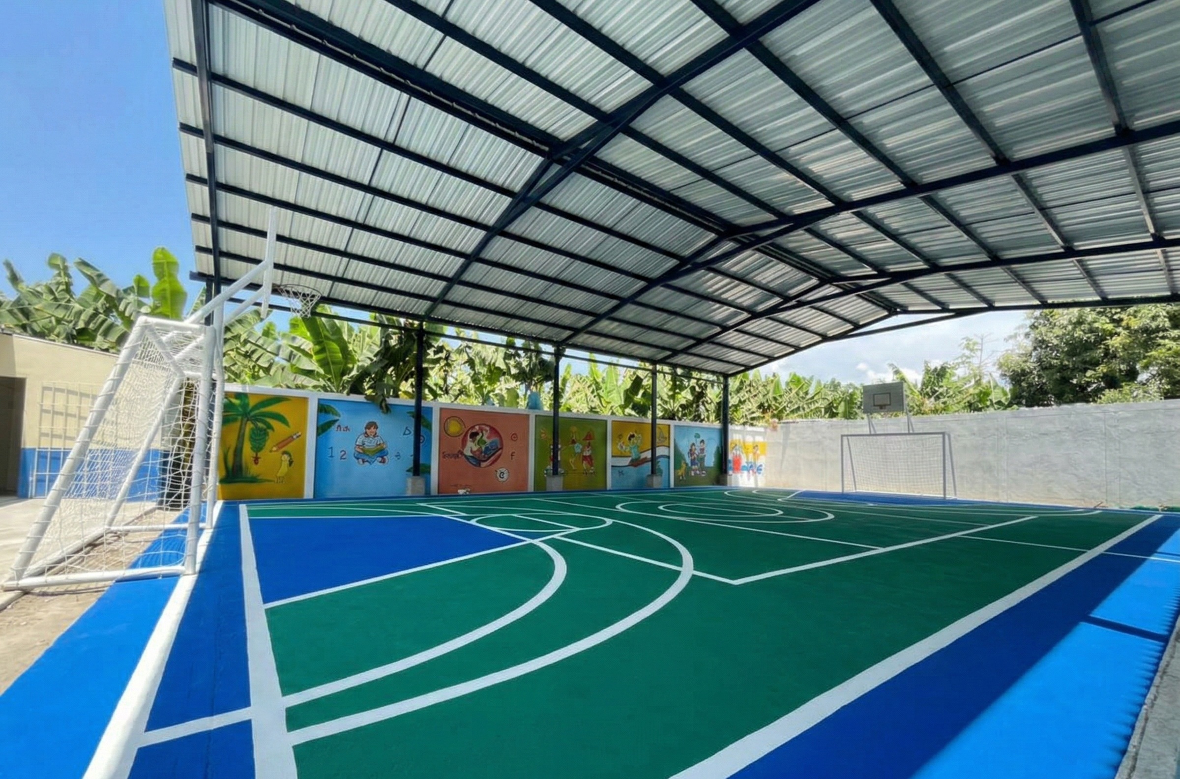 En este contexto, se adelantó la construcción de un comedor escolar con capacidad para 100 estudiantes, dotado con cubierta termoacústica, acabados de calidad, sistemas eléctricos, aires acondicionados y equipamiento completo. Asimismo, se realizó la renovación de pintura general en áreas comunes, el mejoramiento de la cancha deportiva, el mantenimiento y adecuación del parque infantil, y la construcción de la sala de informática con capacidad para 25 estudiantes.