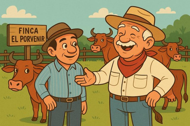 Y así fue como Don Yanco, con un desayuno de bufet de hotel cinco estrellas y una labia que no se enseña en ninguna universidad, logró vender el ganado más triste del municipio como si fueran los campeones de la feria. Desde ese día, en San Carlos se dice que Don Yanco no vende vacas… ¡vende cuentos con chicharrón y café con leche!