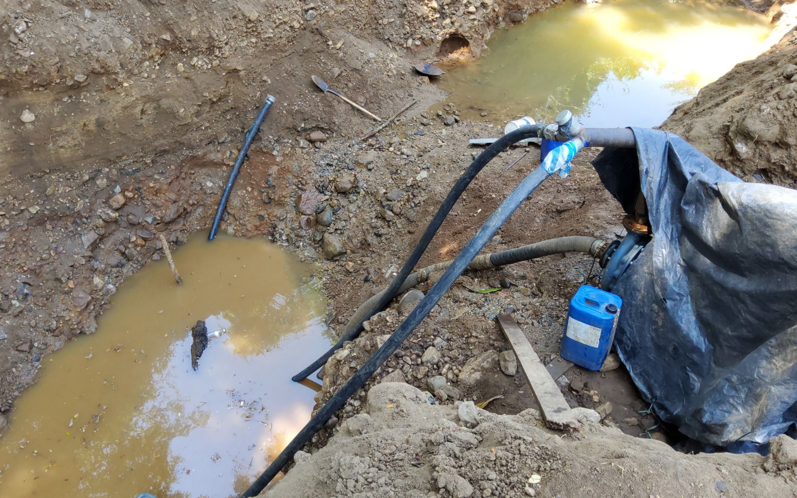 Los cuerpos de agua sufrieron vertimientos continuos de lodos y sedimentos, a lo que se suma el inminente riesgo de contaminación química por combustibles que caen directamente sobre el suelo.