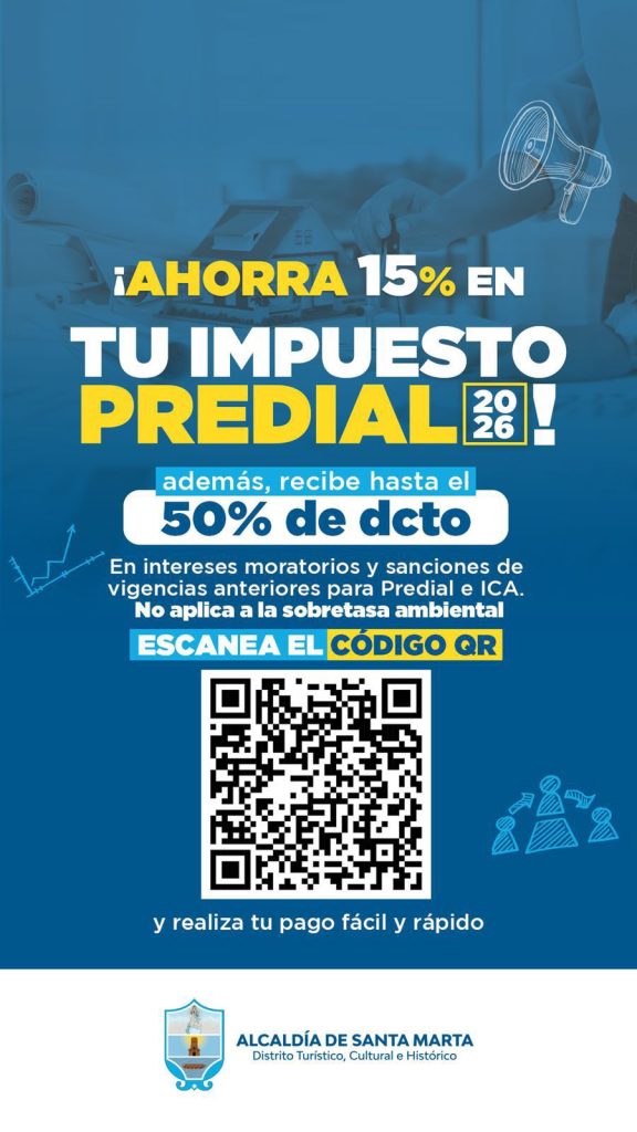 La Alcaldía de Santa Marta, a través de la Secretaría de Hacienda Distrital y la Dirección de Rentas, reiteran el llamado a todos los contribuyentes para que se pongan al día con sus obligaciones tributarias y aprovechen los beneficios vigentes en materia de impuestos.
