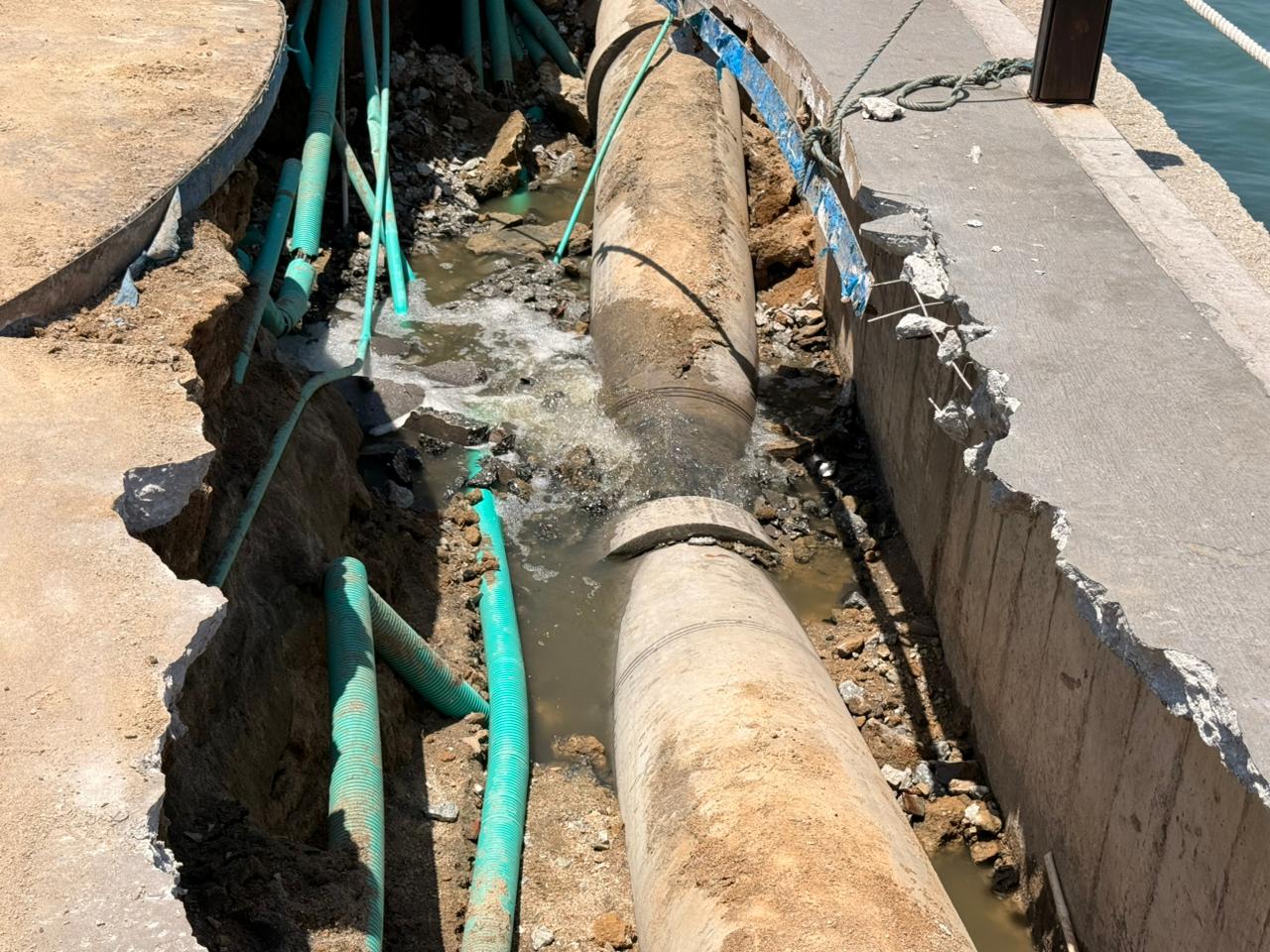 Orlando Vélez Fernández, director de Acueducto y encargado de la Dirección de Alcantarillado de la Essmar detalló: “hemos detectado que hubo una socavación, producto del fuerte oleaje, en la parte inferior del malecón, afectando todo lo que es la parte del soporte de la estructura de la tubería. Al no haber ese soporte, la tubería se bajó y se separaron las uniones”.