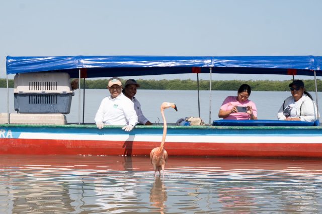 Tras un proceso integral de recuperación, los flamencos fueron reincorporados a su hábitat natural en el sector del barrio San Juan, punto de embarque de los pescadores y sitio estratégico por la presencia permanente de estas especies y por el trabajo articulado que la Corporación adelanta con pescadores del sector para promover a futuro iniciativas de ecoturismo, especialmente el avistamiento de estas emblemáticas aves.